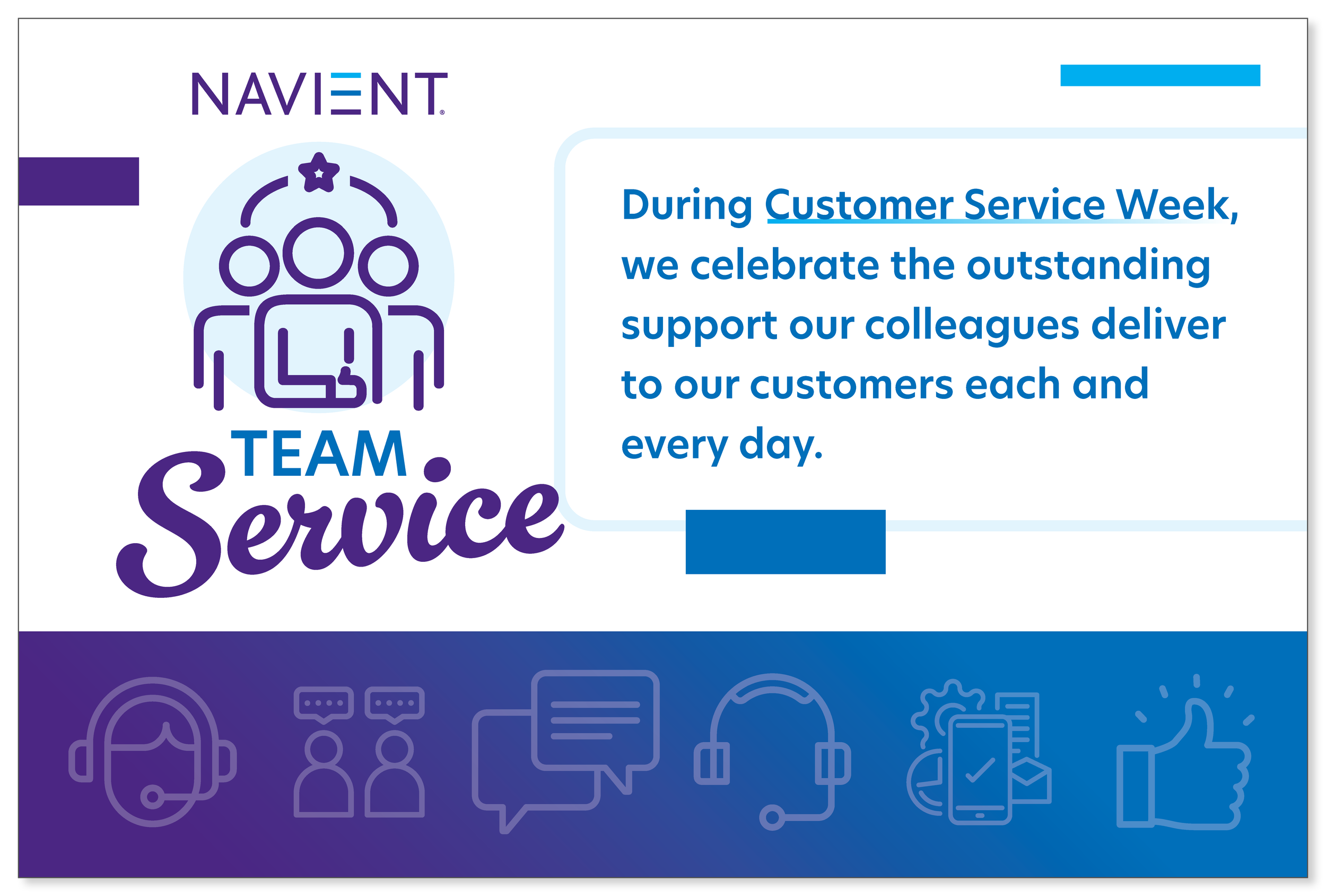 Graphic for Navient's Customer Service Week, featuring the words "Team Service" and symbols representing customer support and communication.
