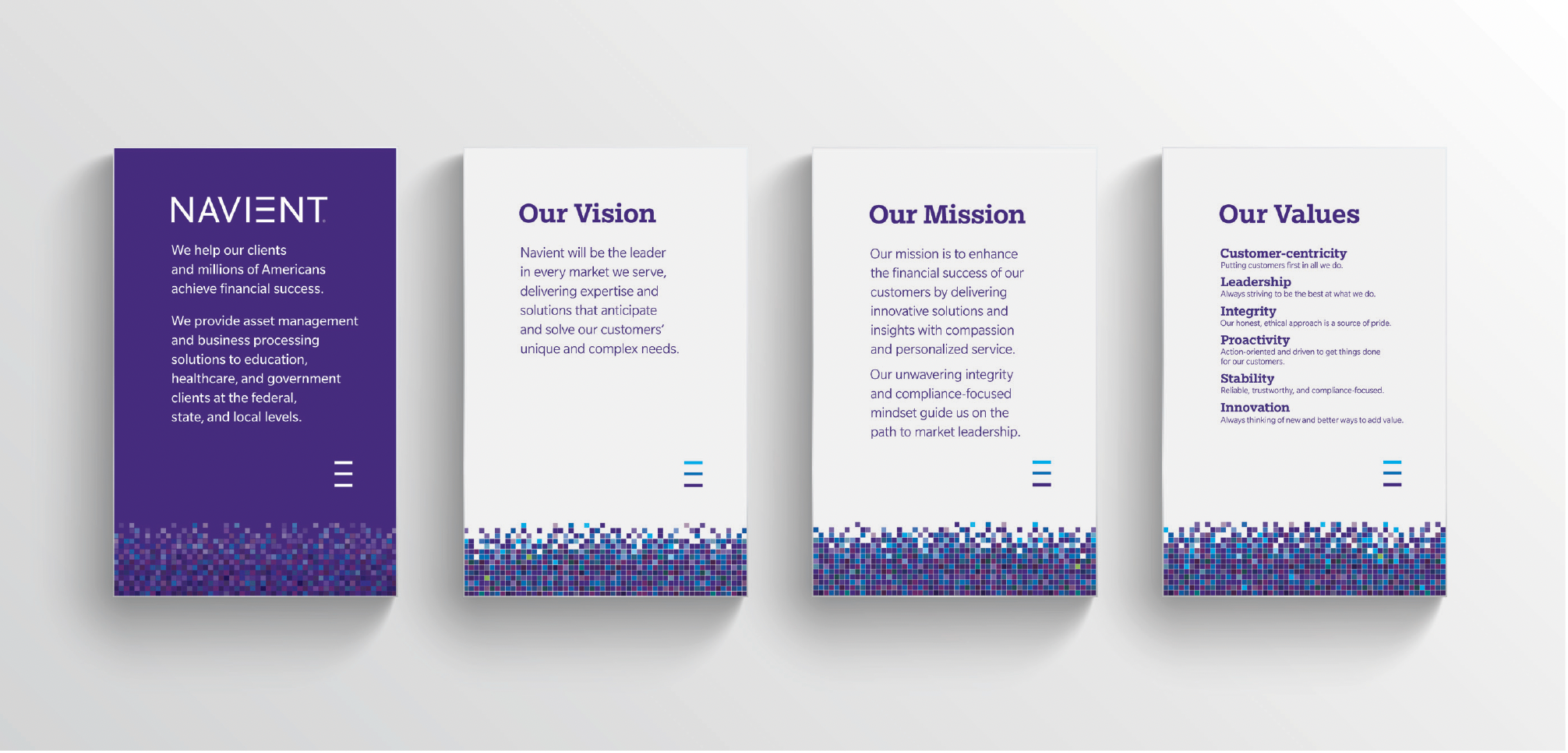 Before joining the Marketing and Creative Services team, the Navient brand mark and a brief set of brand guidelines were in place at launch.
